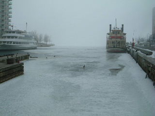 五大湖の一つオンタリオ湖。冬なので氷ってます。